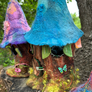 Over a few weeks the children came together once a week to felt the fairy houses. Then adding with tiny stitches the windows and doors. It was much fun to see the details grow for the fairy dwellings.